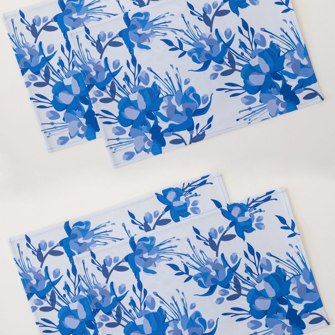 If you're looking for placemats with a unique design, the Blue Fuchsia design by Alisa Textile is perfect for adding an artistic touch to any setting. A high-quality, 100% Organic Cotton product, this delicate, monochromatic design placemats come in a Set of 2 and a Set of 4, so you can always have more than enough. Do not forget to check out our Blue Fuchsia Table Linen Set, which includes four placemats and a matching table runner. Serve style, and bring peacefulness and optimism to your kitchen. Our kitchen textiles are GOTS certified and manufactured in the EU.